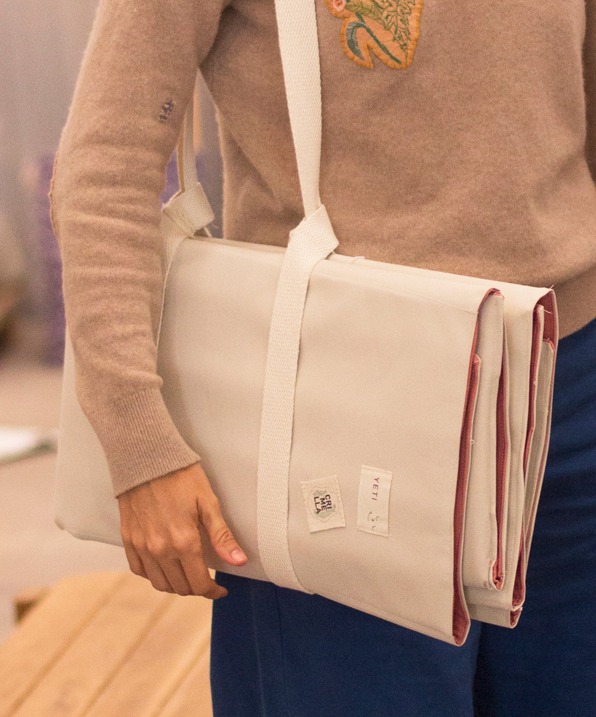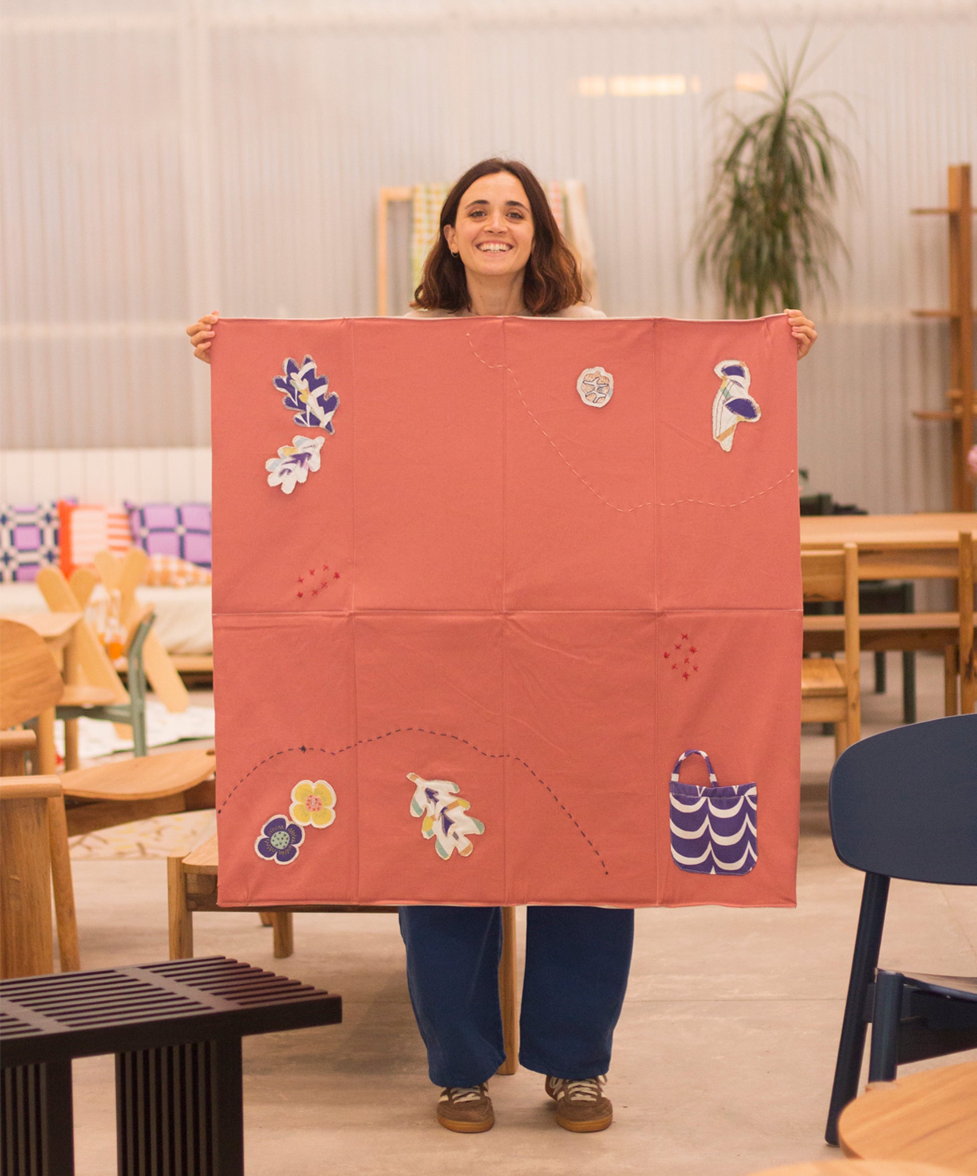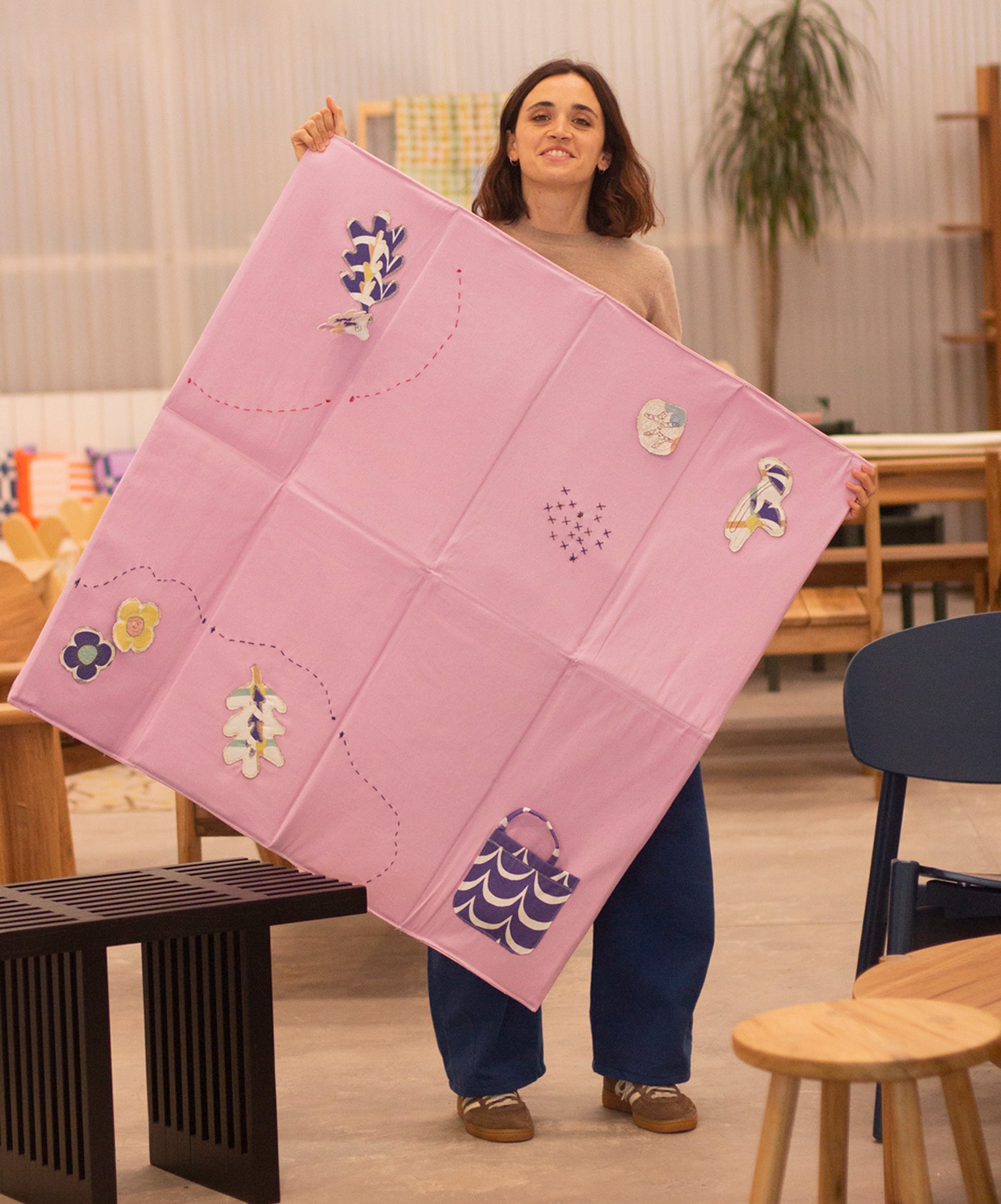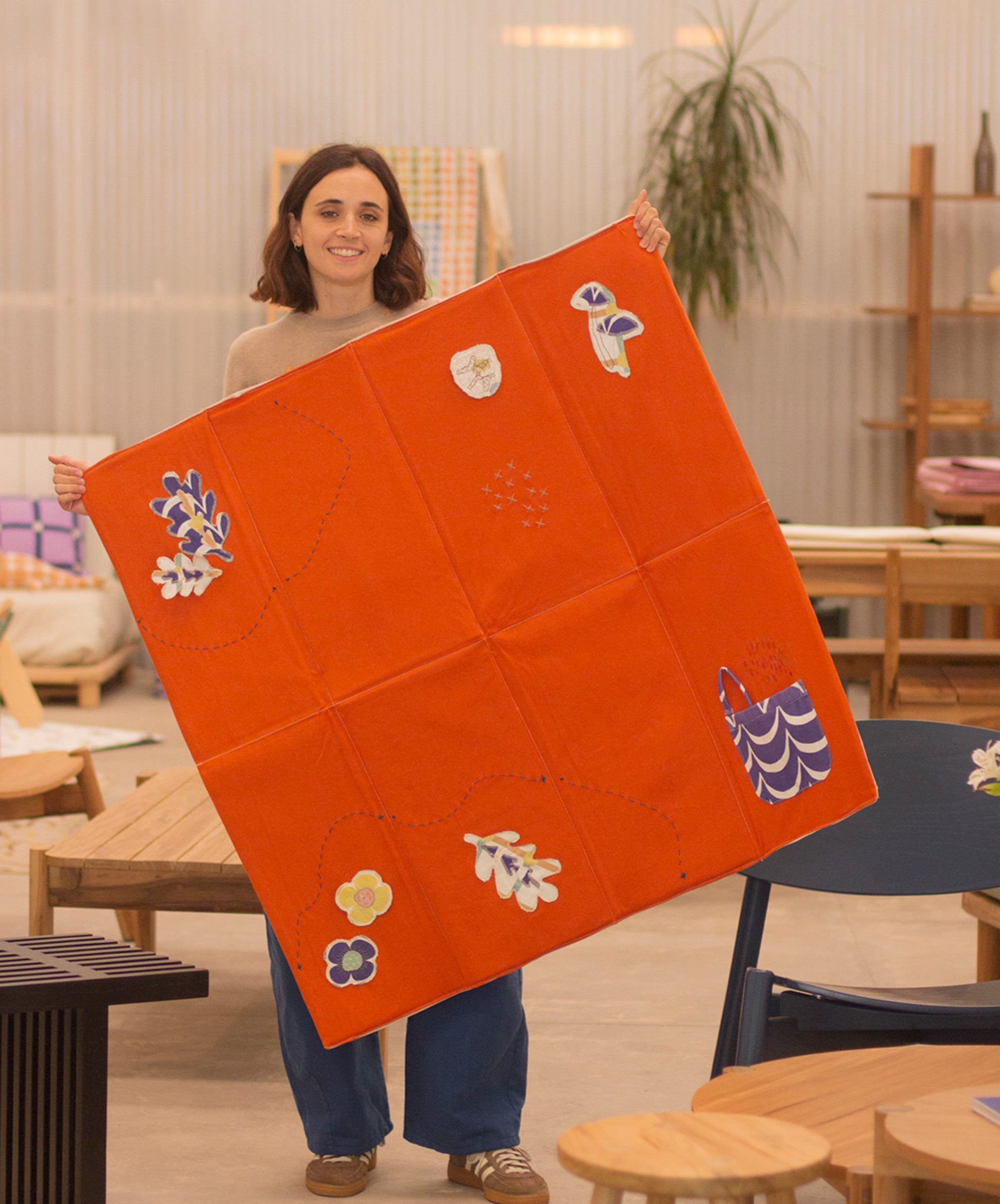 Creamos una cápsula sensorial y textil, hecha a mano por Maria Crimella. Cada mat es único, inspirado en animales y plantas silvestres, con apliques bordados a partir de telas reutilizadas de Yeti.