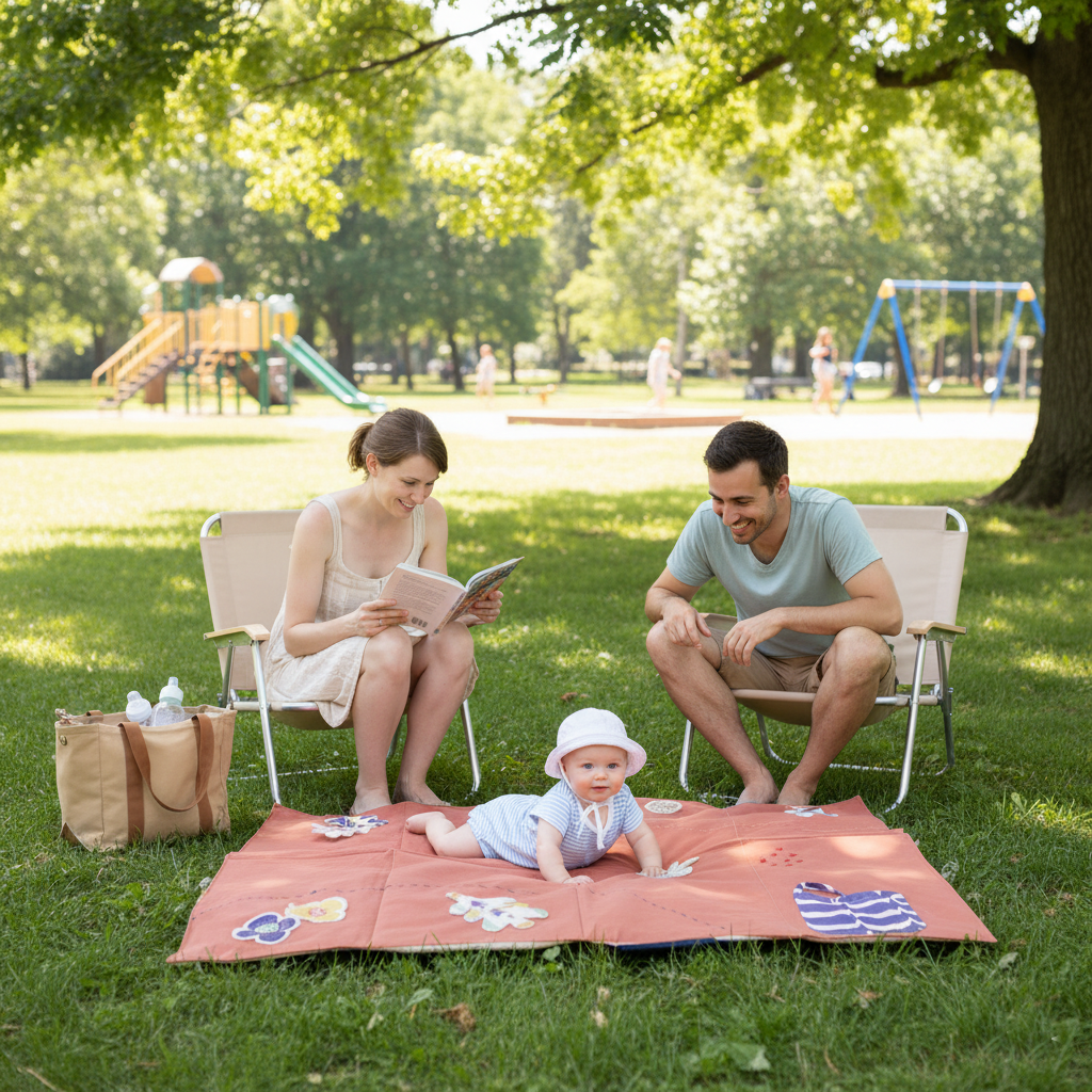 Pensado para acompañar el movimiento libre en los primeros meses, y luego transformarse en una lona acolchonada para jugar o descansar al aire libre.